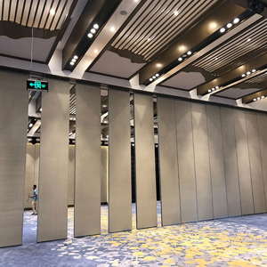 酒店移动隔断墙一般是通过吊轮顶部悬挂于天花板上,在内部结构中方便安装,工人进行电缆铺设,无需打墙洞埋线缆,后期也方便线缆...