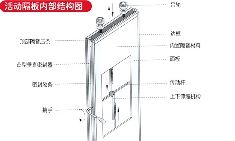 活动隔断采用内芯铝合金框架及钢质部件制成,不易变形,配合娴熟拼装工艺。吊挂系统钢结构,稳固安全,承重能力强。拥有专业的隔断技术、完善的隔断服务、丰富的隔断安装经验。